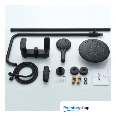 | Комплектация | верхний душ, штанга, ручной душ (лейка), держатель лейки, шланг, смеситель, излив для ванны |