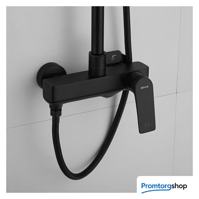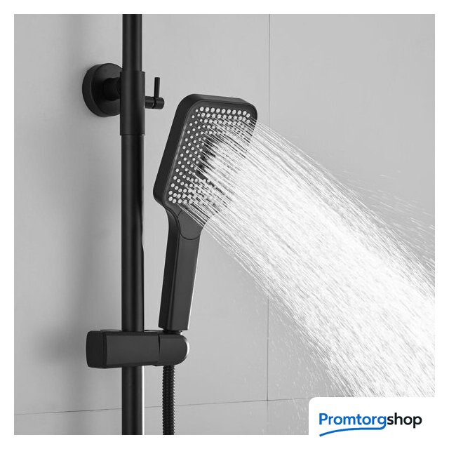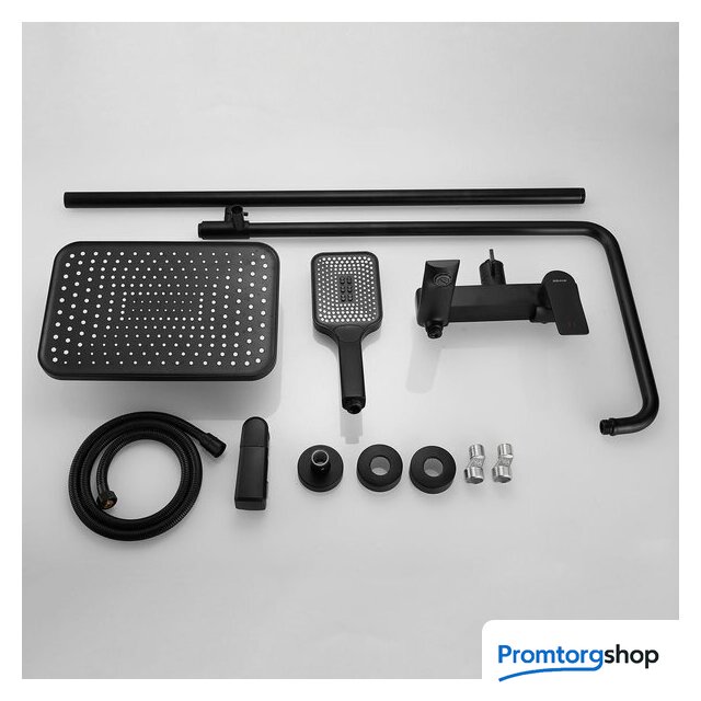 Комплектация | верхний душ, штанга, ручной душ (лейка), держатель лейки, шланг, смеситель, излив для ванны |