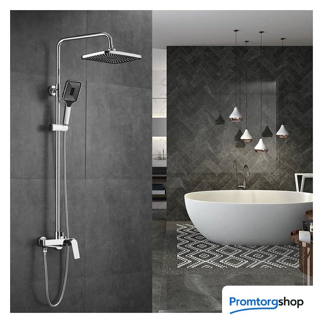 | Комплектация | верхний душ, штанга, ручной душ (лейка), держатель лейки, шланг, смеситель, излив для ванны |