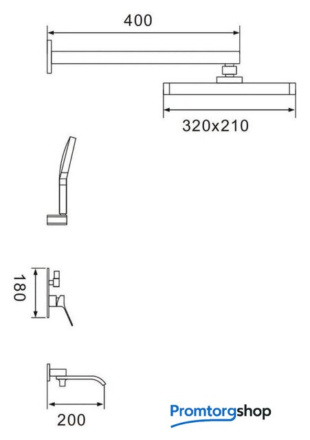 | Диаметр (ширина) верхнего душа | 320 мм |