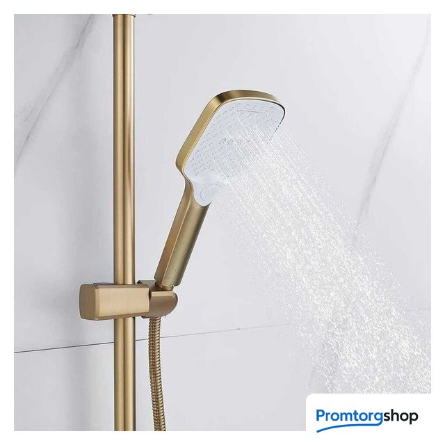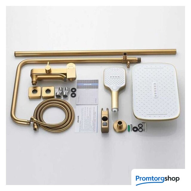 Комплектация | верхний душ, ручной душ (лейка), держатель лейки, шланг, излив для ванны |