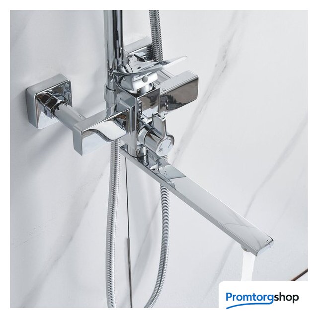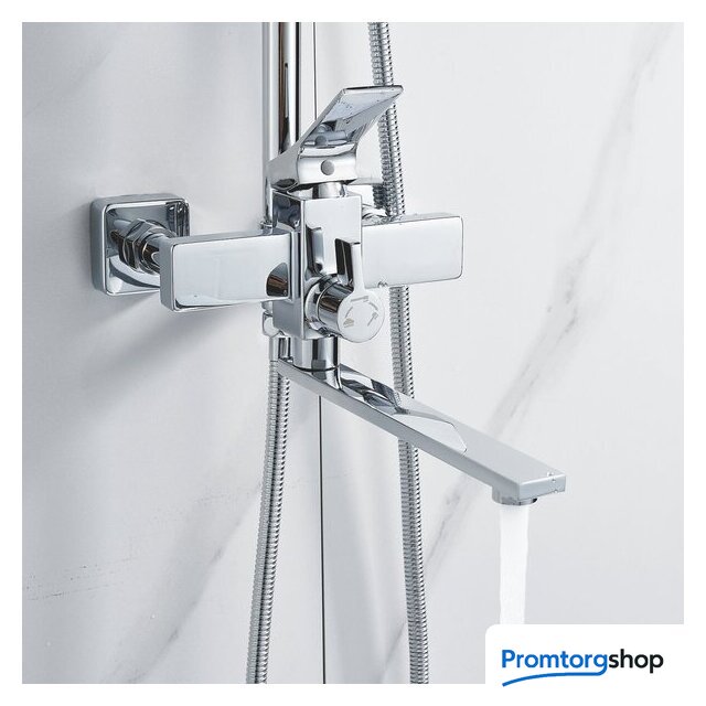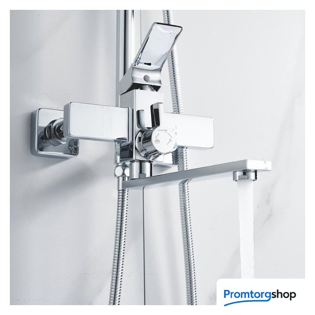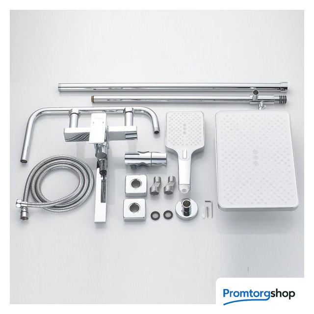| Комплектация | верхний душ, штанга, ручной душ (лейка), держатель лейки, шланг, смеситель, излив для ванны |