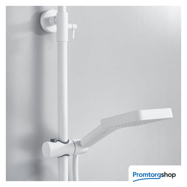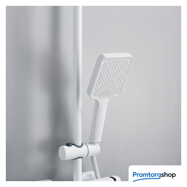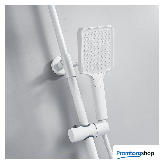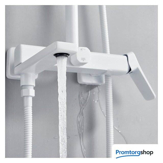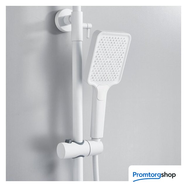 Комплектация | верхний душ, штанга, ручной душ (лейка), держатель лейки, шланг, смеситель, излив для ванны |