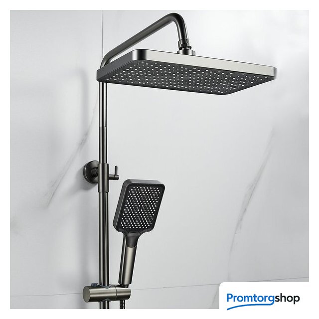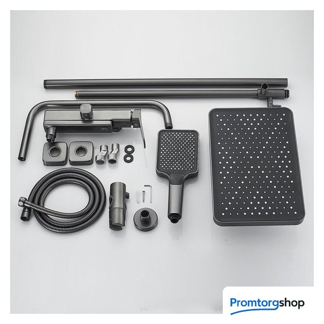 Комплектация | верхний душ, штанга, ручной душ (лейка), держатель лейки, шланг, смеситель, излив для ванны |