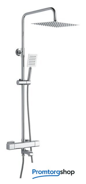 Комплектация | верхний душ, штанга, ручной душ (лейка), держатель лейки, шланг, смеситель, излив для ванны |