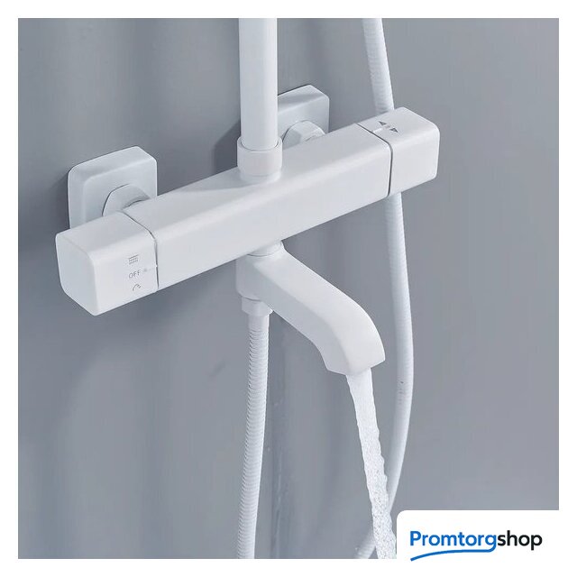 | Комплектация | верхний душ, штанга, ручной душ (лейка), держатель лейки, шланг, смеситель, излив для ванны |