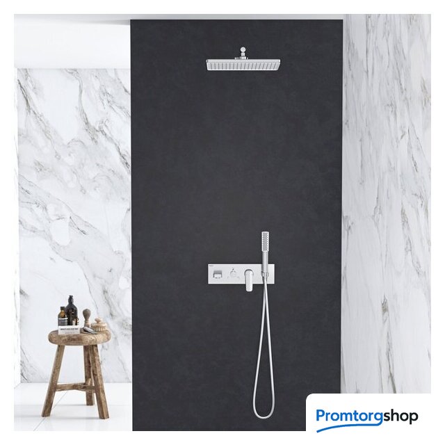Комплектация | верхний душ, ручной душ (лейка), держатель лейки, шланг, смеситель, излив для ванны |