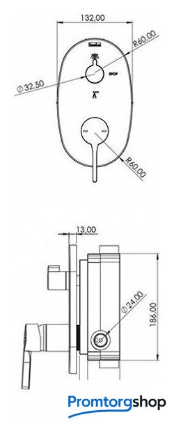 | Форма верхнего душа | круглая |