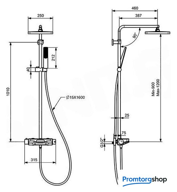 | Диаметр (ширина) верхнего душа | 250 мм |