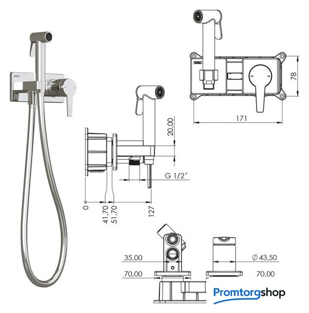 | Комплектация | держатель лейки, шланг, смеситель, гигиенический душ (лейка) |