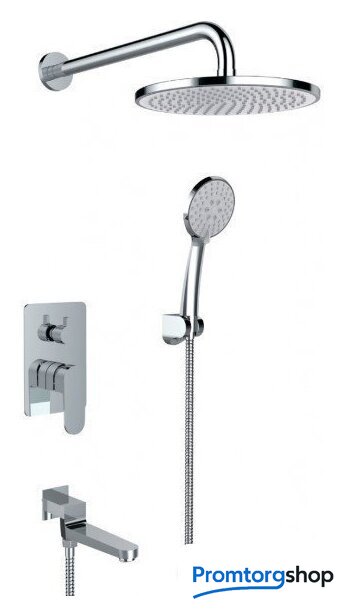| Комплектация | верхний душ, ручной душ (лейка), держатель лейки, шланг, смеситель, излив для ванны |