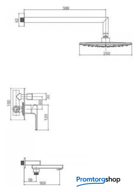 | Диаметр (ширина) верхнего душа | 250 мм |
