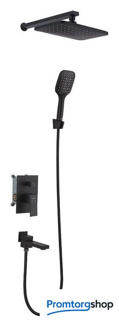 | Комплектация | верхний душ, ручной душ (лейка), держатель лейки, шланг, смеситель, излив для ванны |