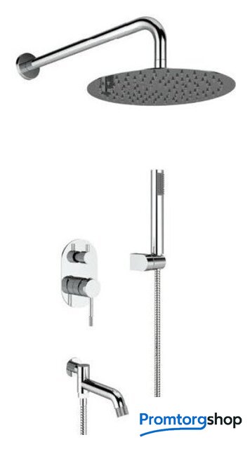 | Комплектация | верхний душ, ручной душ (лейка), держатель лейки, шланг, смеситель, излив для ванны |