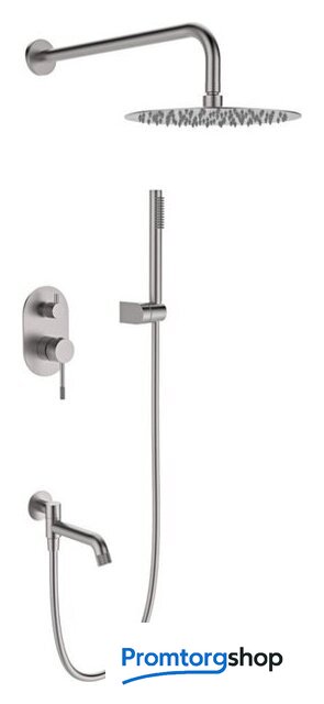 | Комплектация | верхний душ, ручной душ (лейка), держатель лейки, шланг, смеситель, излив для ванны |