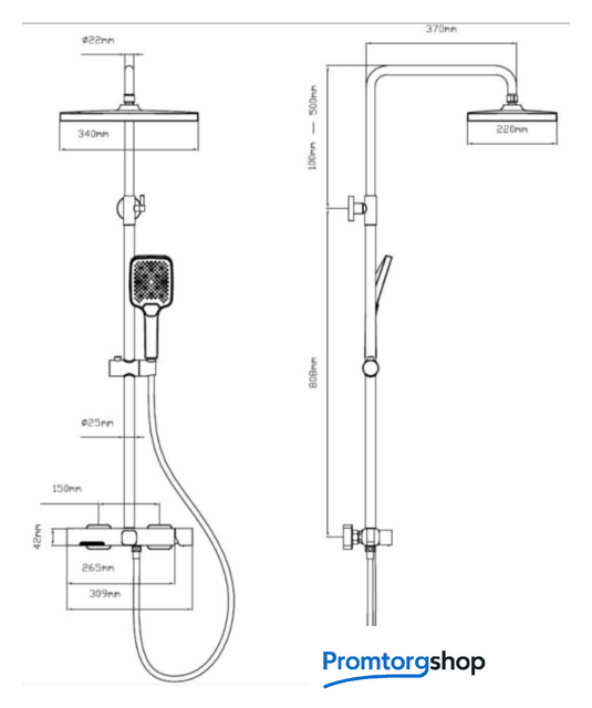 | Диаметр (ширина) верхнего душа | 340x220 мм |