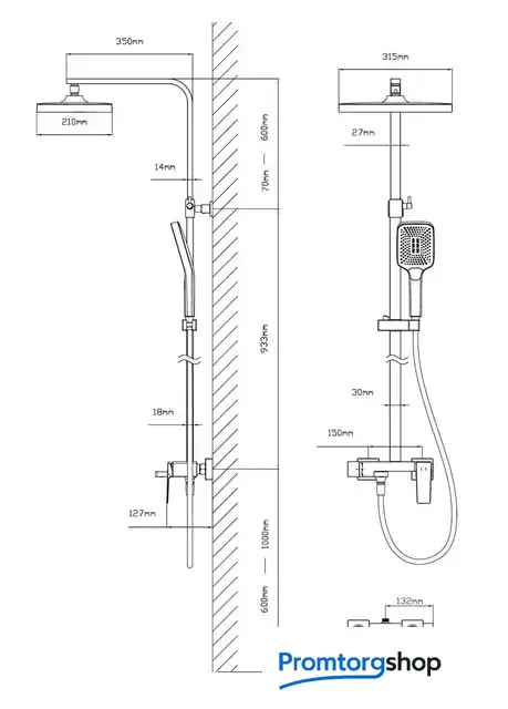 Вылет верхнего душа | 350 мм |