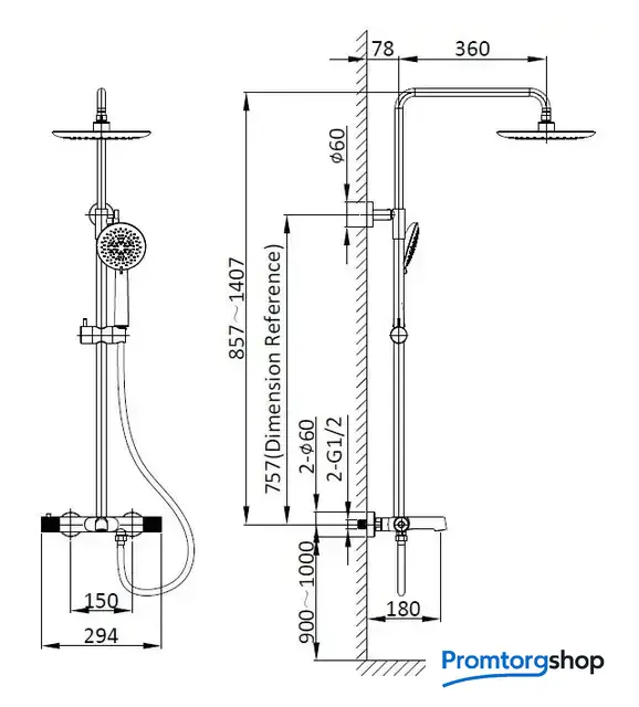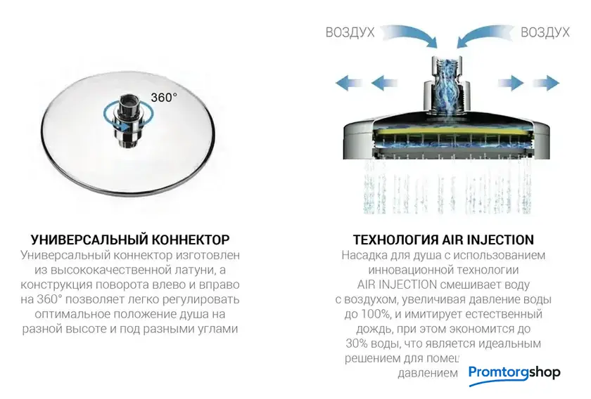 | Диаметр (ширина) верхнего душа | 250 мм |