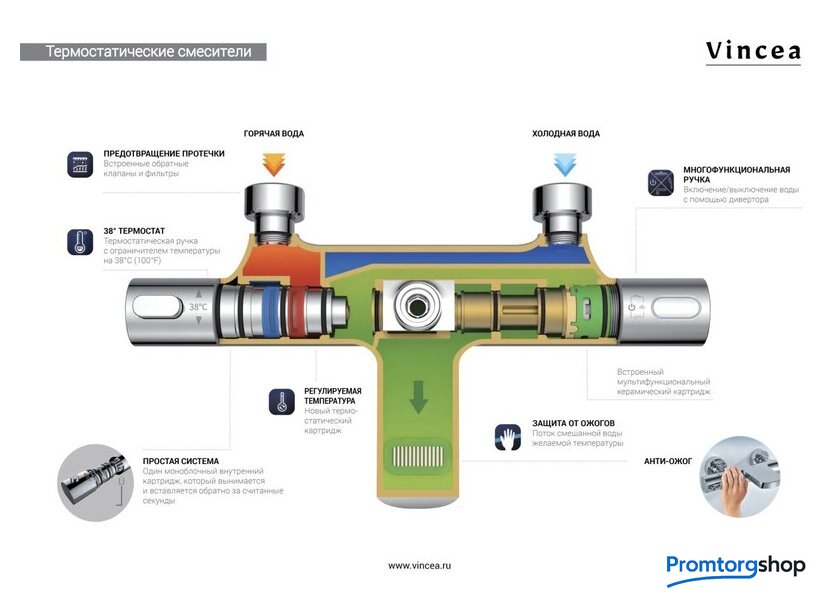 | Керамический картридж | Комплектуется термостатическим картриджем Vernet |