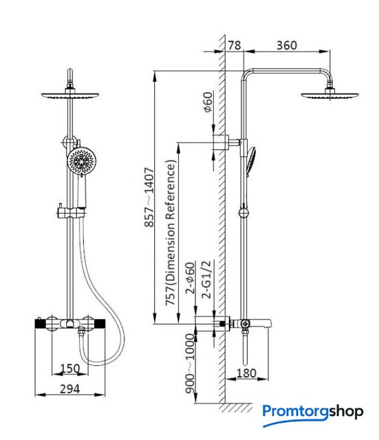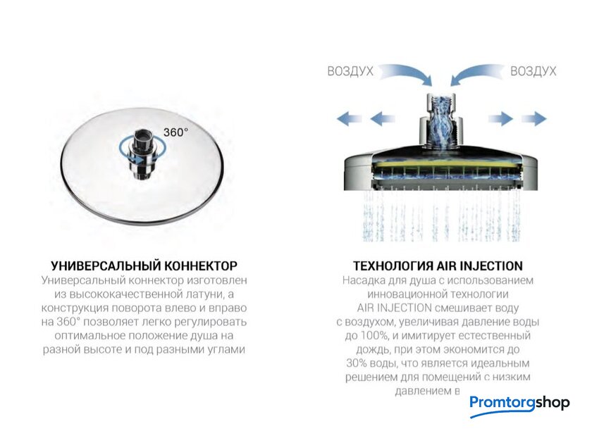 | Диаметр (ширина) верхнего душа | 250 мм |