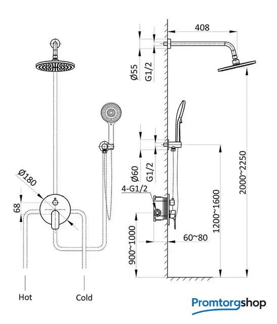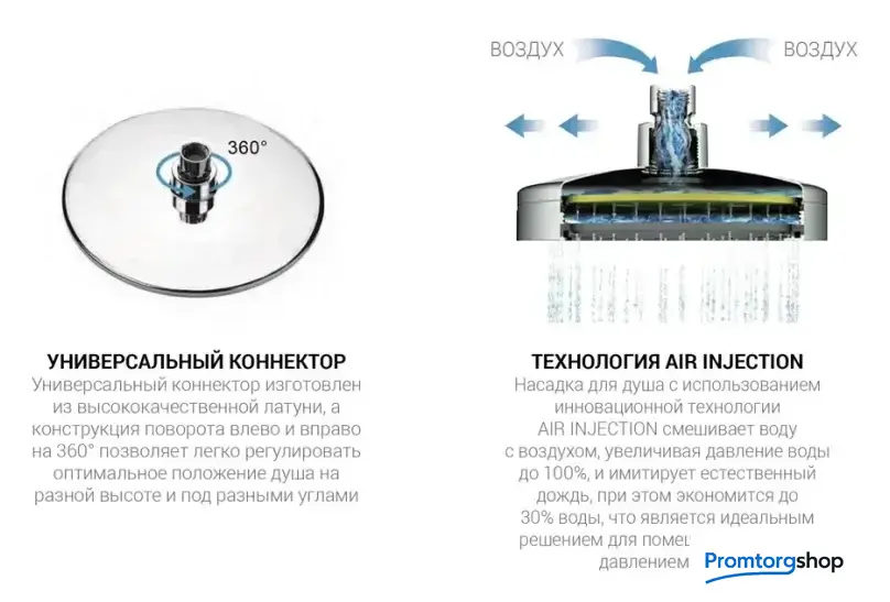 Диаметр (ширина) верхнего душа | 255*255 мм |