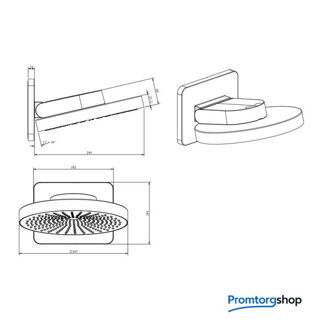 Диаметр (ширина) верхнего душа | 247*247 мм |
