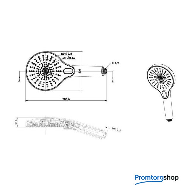 Диаметр (ширина) ручного душа | 130*267.5 мм |