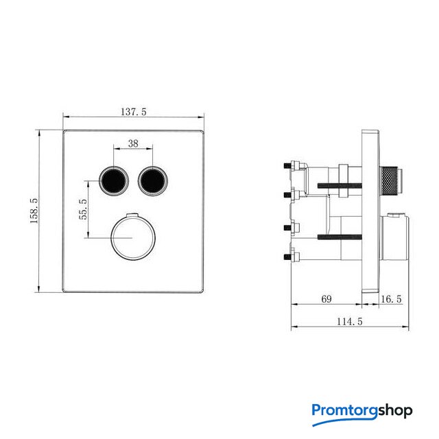Смеситель/вентиль | Встраиваемый термостатический смеситель c 2-х режимной регулировкой напора воды |
