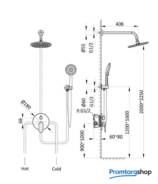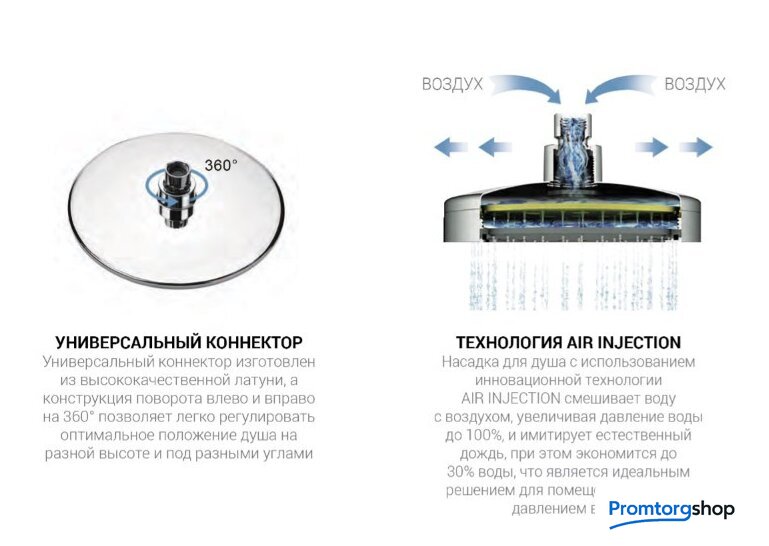 Диаметр (ширина) верхнего душа | 255*255 мм |