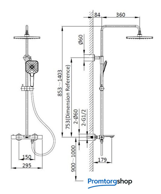 | Вылет верхнего душа | 360 мм |