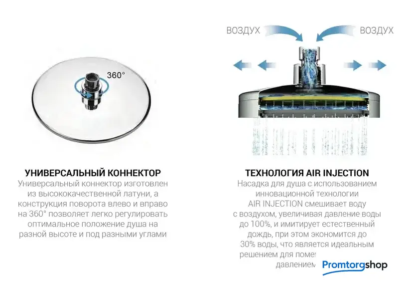 | Диаметр (ширина) верхнего душа | 250 мм |