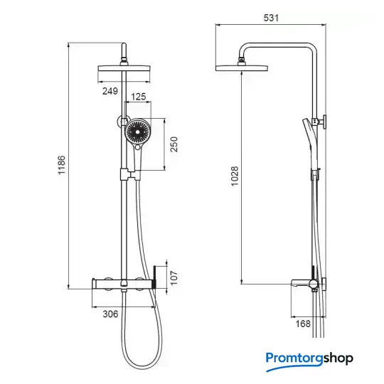 Диаметр (ширина) верхнего душа | 249 мм |