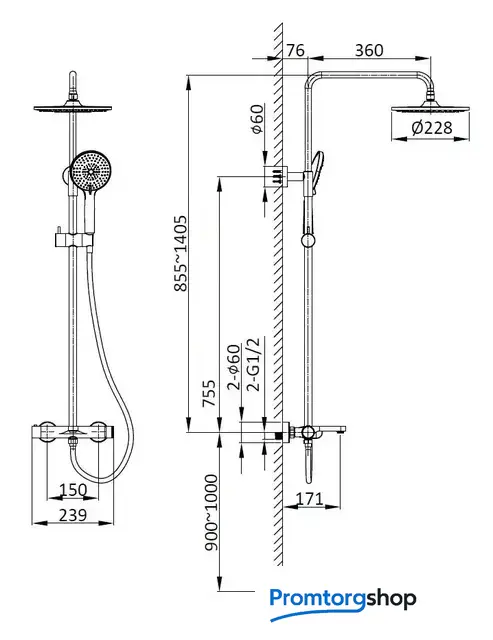 | Диаметр (ширина) верхнего душа | 250 мм |