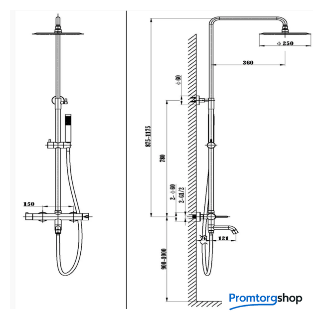 | Диаметр (ширина) верхнего душа | 250*250 мм |