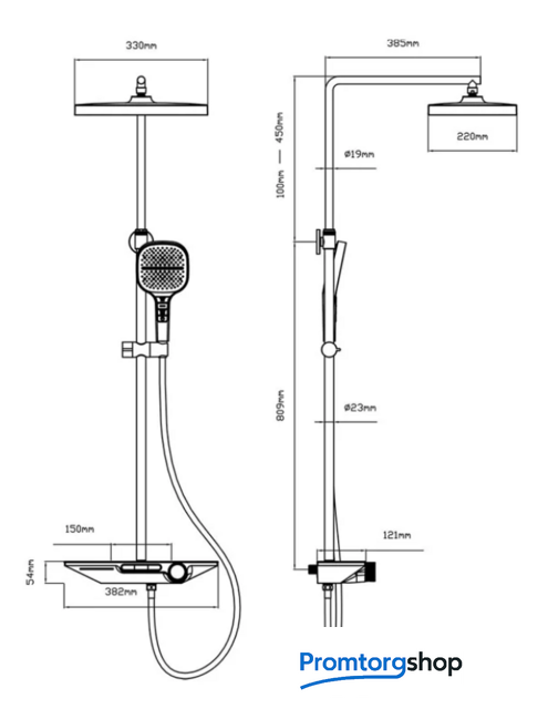 | Диаметр (ширина) верхнего душа | 330*220 мм |