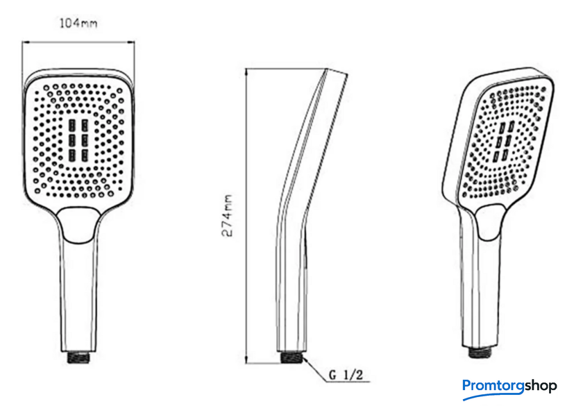 | Диаметр (ширина) ручного душа | 104*274 мм |
