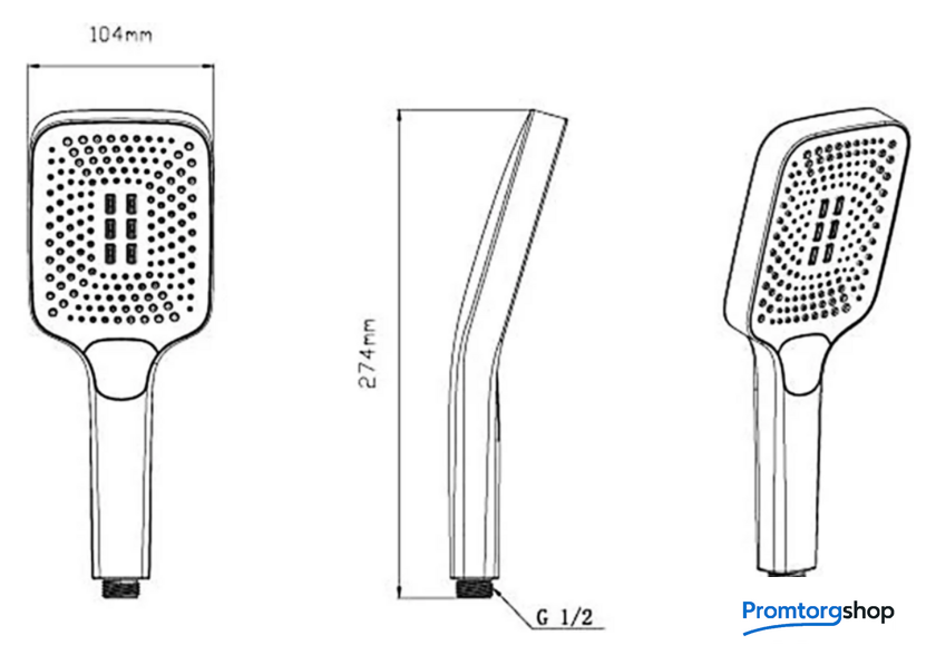 | Диаметр (ширина) ручного душа | 104*274 мм |