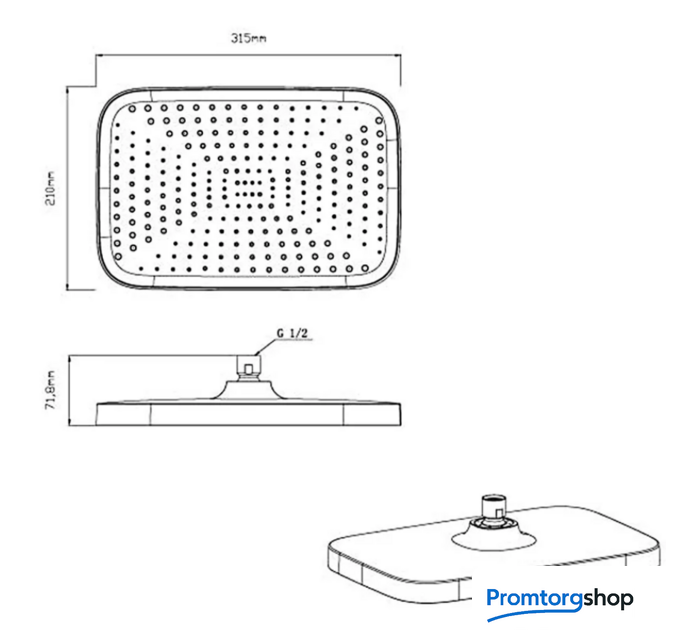 | Диаметр (ширина) верхнего душа | 315*210 мм |