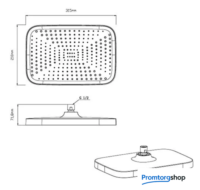 | Диаметр (ширина) верхнего душа | 315*210 мм |