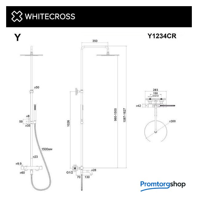 душевая система (с верхним душем), настенный монтаж, термостатический смеситель