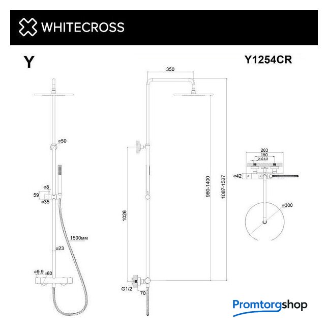 душевая система (с верхним душем), настенный монтаж, термостатический смеситель