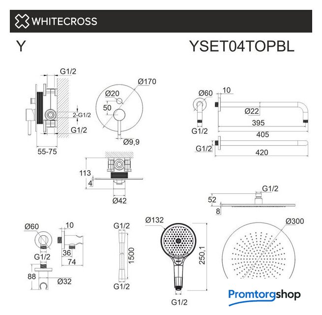 | Диаметр (ширина) верхнего душа | 300 мм |