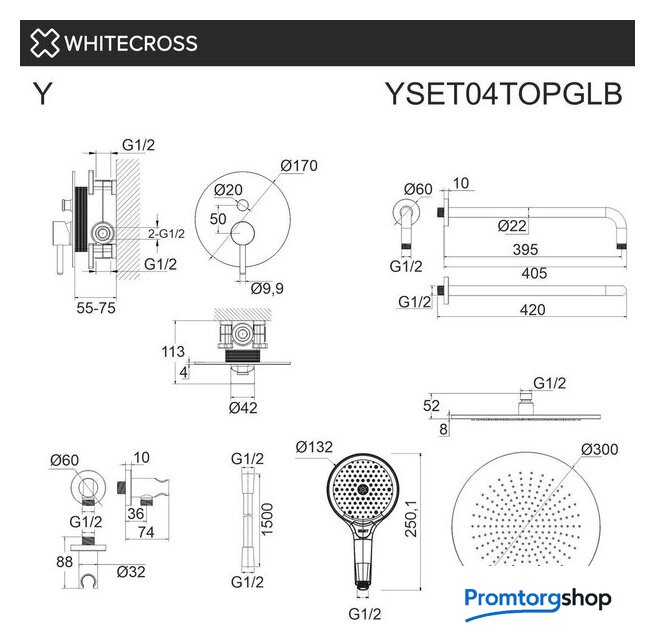 Комплектация | верхний душ, ручной душ (лейка), держатель лейки, шланг, смеситель |
