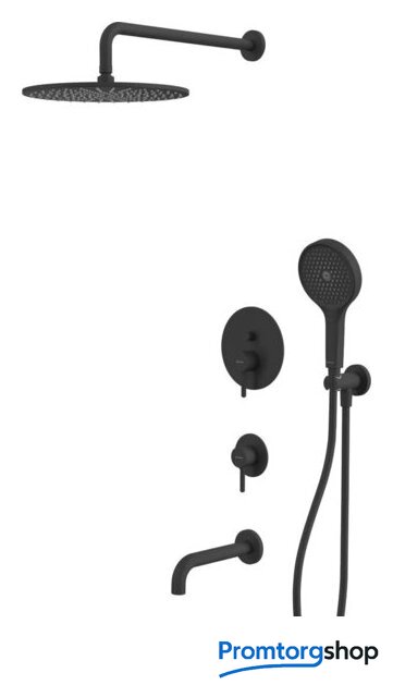 | Комплектация | верхний душ, ручной душ (лейка), держатель лейки, шланг, смеситель, излив для ванны |