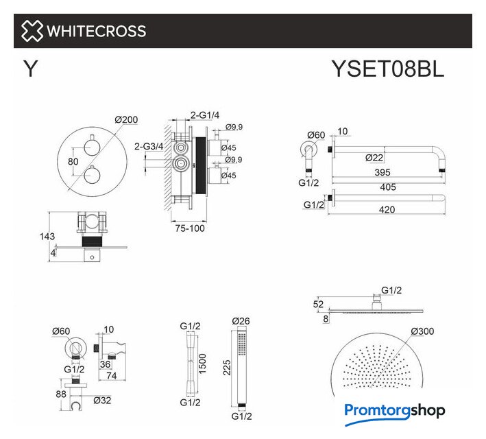 | Диаметр (ширина) верхнего душа | 300 мм |