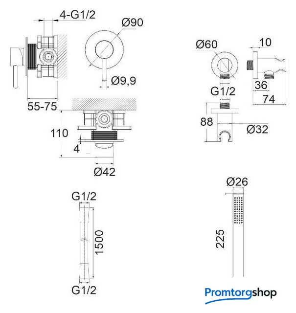 | Тип | душевой гарнитур (без верхнего душа) |