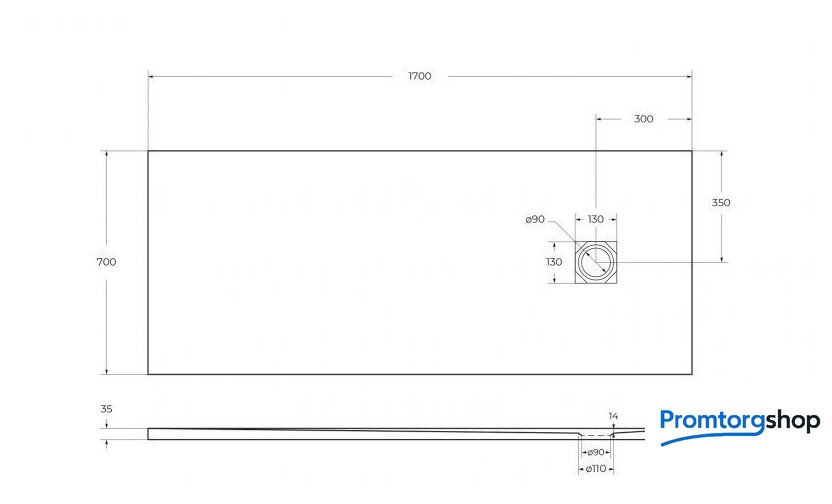 Душевой поддон BelBagno TRAY-MR-UNO-AH-170/70-35-W 170x70