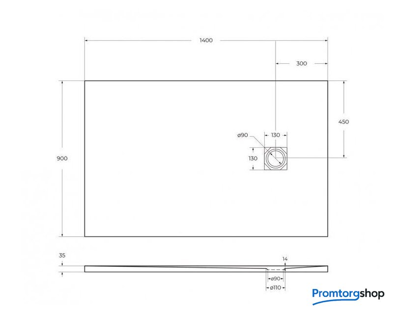 Душевой поддон BelBagno TRAY-MR-UNO-AH-140/90-35-W 140x90