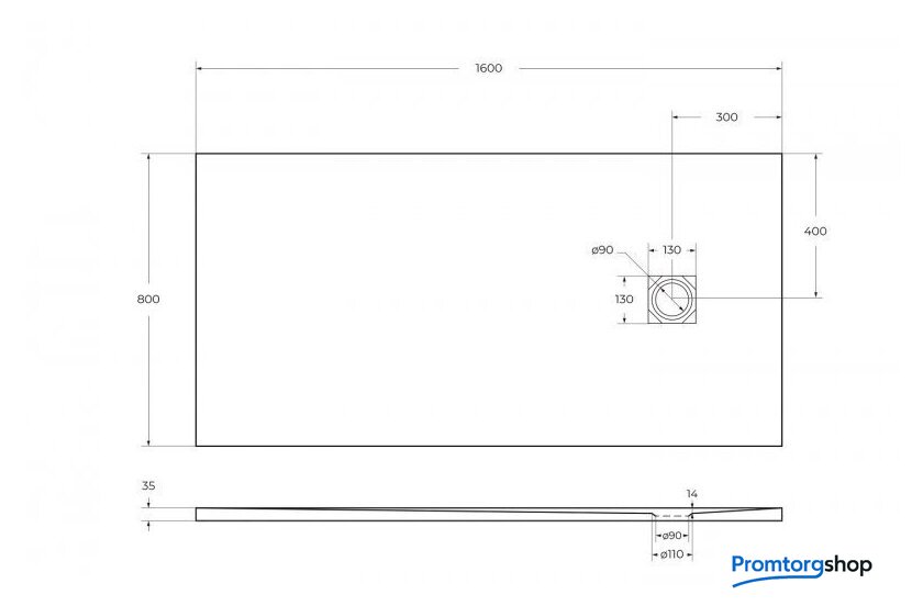 Душевой поддон BelBagno TRAY-MR-UNO-AH-160/80-35-W 160x80