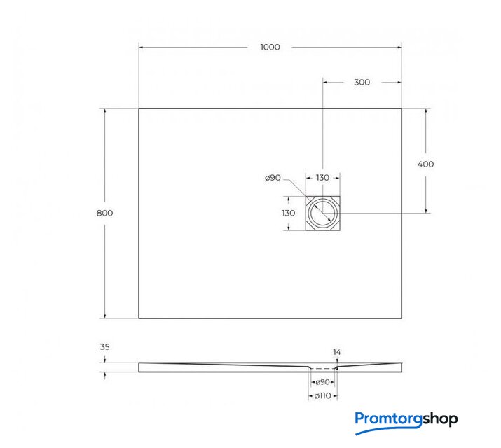 Душевой поддон BelBagno TRAY-MR-UNO-AH-100/80-35-W 100x80